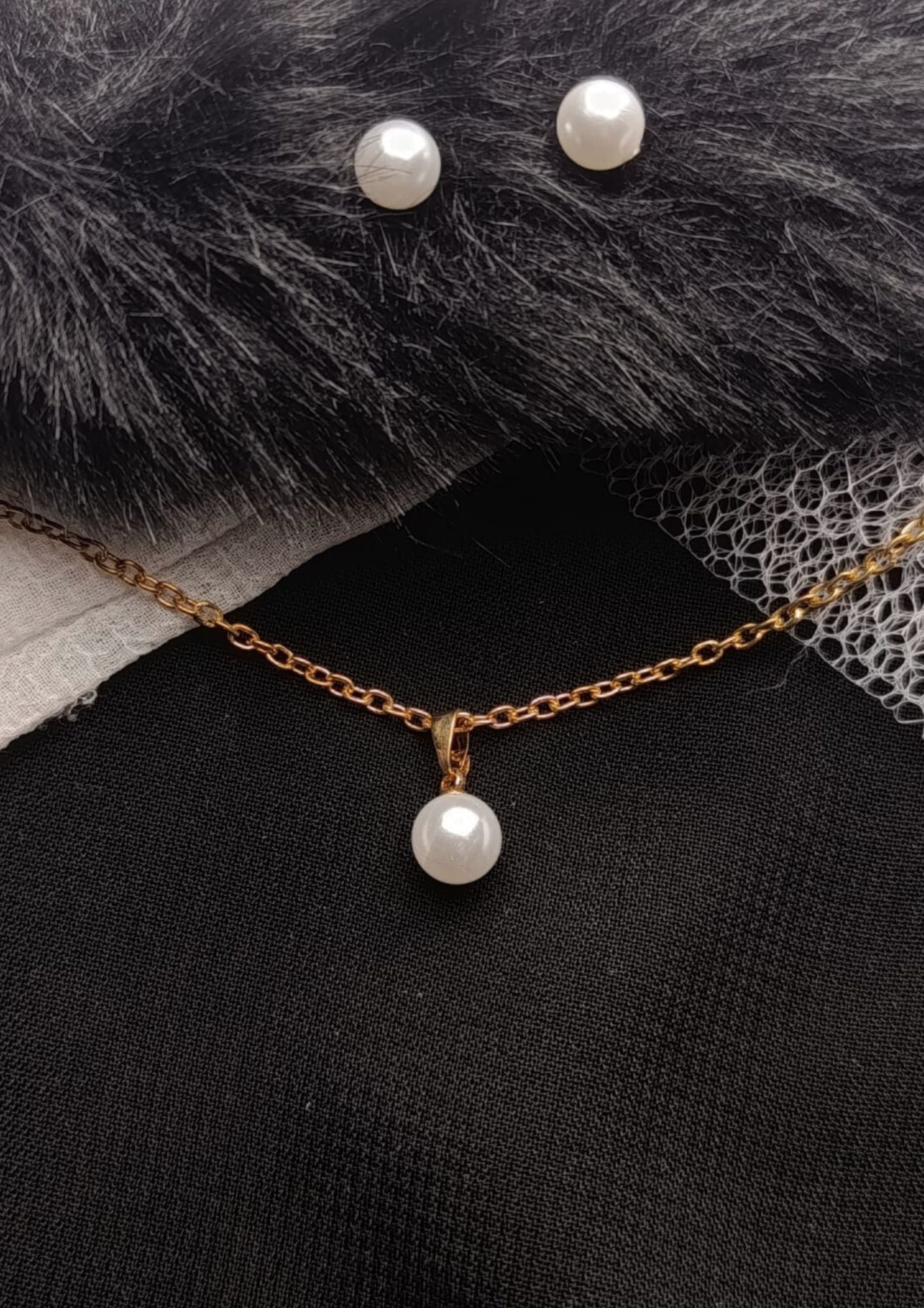 This timeless jewelry set features a delicate golden chain with a single, lustrous pearl pendant. The set is completed with a matching pair of elegant pearl stud earrings, perfect for any occasion. The classic design ensures that this set will remain a staple in your jewelry collection, offering a touch of refined beauty to any outfit, from casual to formal.
