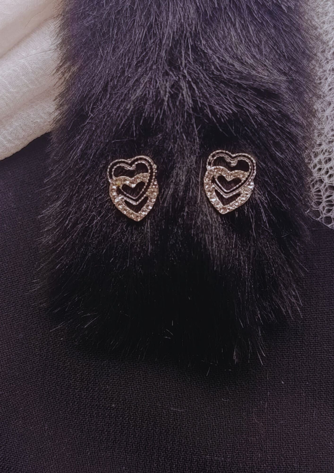These charming heart-shaped stud earrings add a touch of romance and sparkle to your look. Each earring features a double-heart design, with one heart outlined in shimmering crystals and the other in a polished, smooth finish. The intertwined hearts create a unique and elegant look, perfect for adding a subtle, heartfelt accent to any outfit. They are a beautiful and meaningful accessory for daily wear or a special occasion.