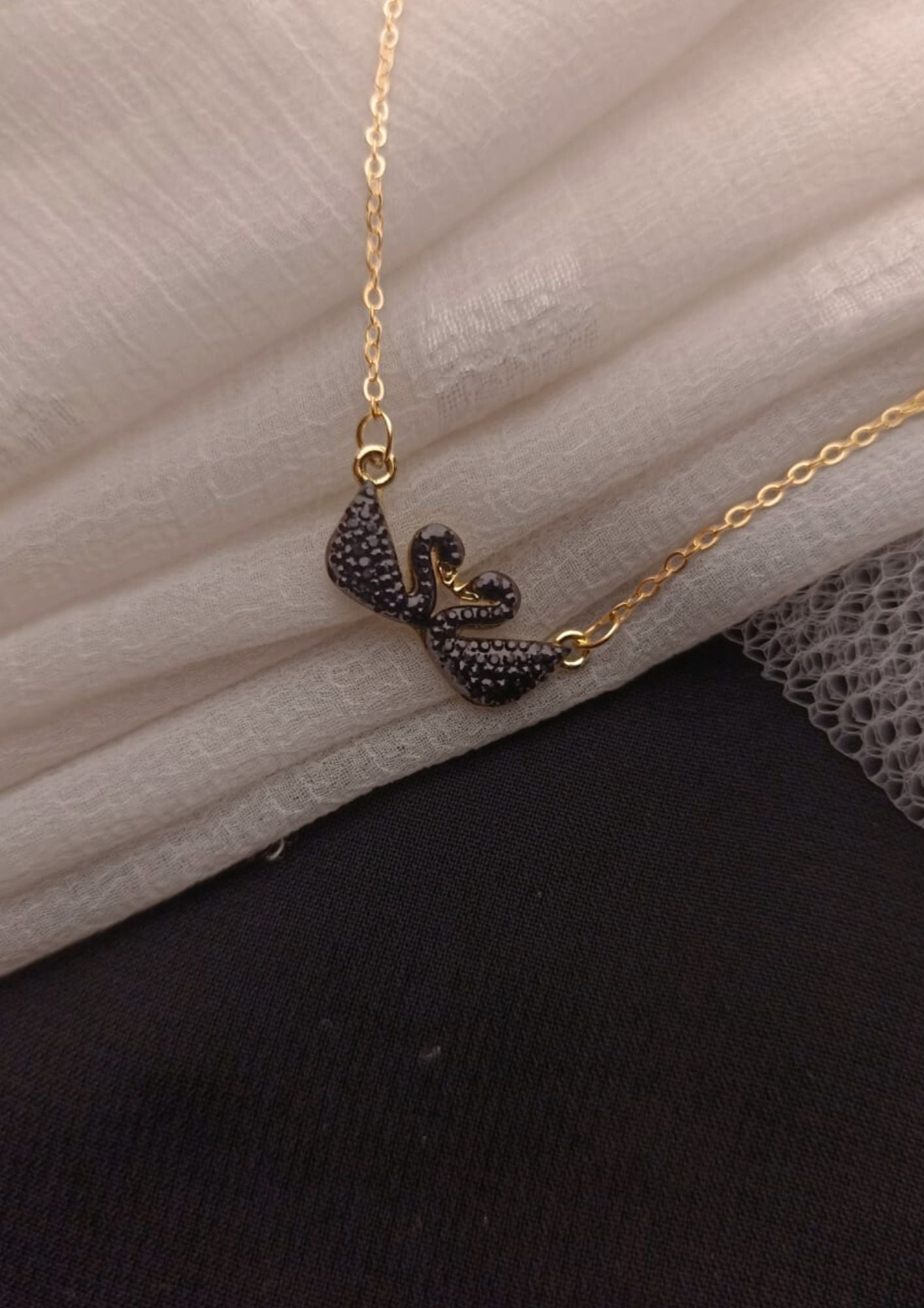 This enchanting necklace is a beautiful symbol of love and grace. It features a delicate gold-toned chain that gracefully holds two intricately detailed swans. Their bodies are adorned with a sparkling, textured black finish, and they are positioned to face each other, forming a subtle heart shape that represents a loving connection. This unique and meaningful piece is a perfect gift for a loved one or a charming addition to your own collection, adding a touch of romance and sophistication to any outfit.