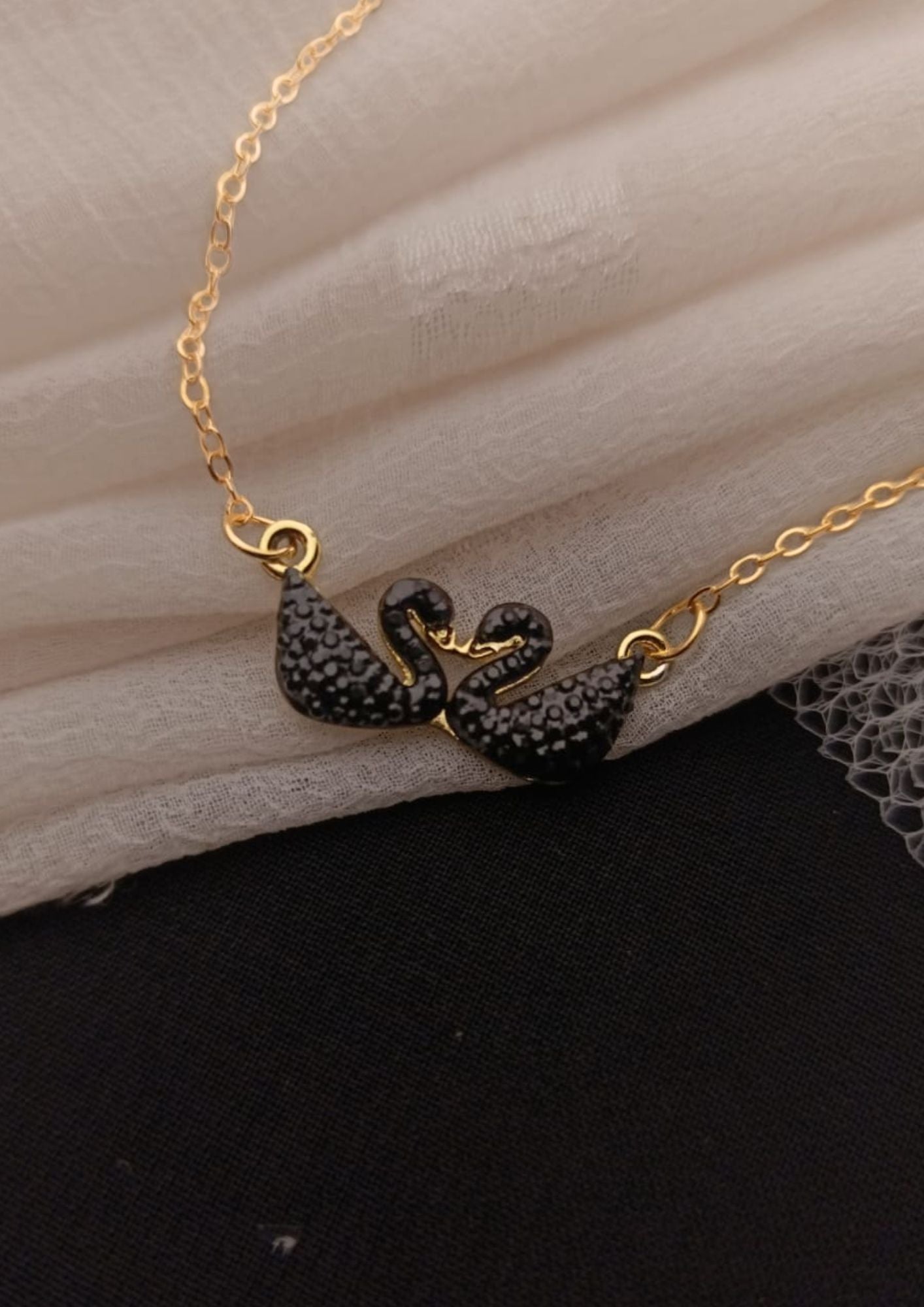 Golden black Swan Couple Necklace